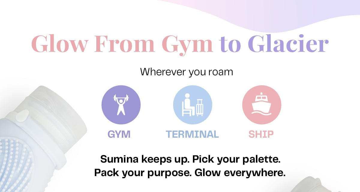 Sumina Horizon Glow Travel Bottles – TSA Approved 3-Pack Silicone Toiletry Containers with Built-In Scrubbers