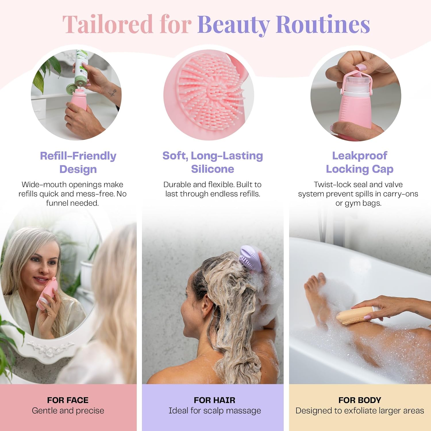 Crafted from premium, BPA-free, food-grade silicone, these bottles not only promise durability but also a user-friendly experience thanks to their easy-squeeze design. Get every last drop of your favorite products while embracing a sustainable lifestyle, as these refillable containers minimize waste and reduce reliance on single-use plastics.